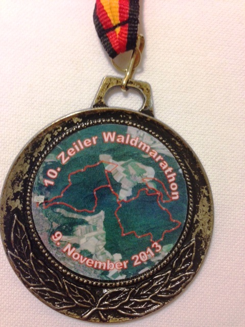 Nach dem letzten Stadtmarathon war es wirklich schön, mal wieder im Wald zu laufen. Die Strecke im Zeiler Wald ist auch wunderschön! Man muss eine Halbmarathonrunde zweimal laufen. Nach etwa 5km erreichte ich die erste Verpflegungsstelle. Dankbar nahm ich einen Becher Wasser entgegen. Entlang der gesamten Strecke fehlte es einem an nichts. An den Verpflegungsstellen wurde man richtig verwöhnt. Ein großes Dankeschön an den Veranstalter!