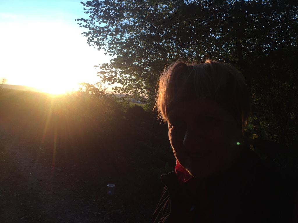 Ich machte ein Selfie mit der Sonne im Hintergrund und freute mich, …