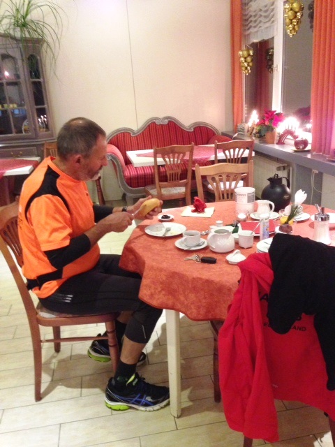 Am 20.12.2013 fuhr ich ziemlich entspannt in Richtung Salzgitter-Bad. Dort hatte ich auf Vorschlag von Marc Fischer ein Zimmer im Hotel „Quellenhof“ gebucht. Im Haus befindet sich ein Italiener, bei dem ich am Abend bei Kerzenlicht gemütlich Spagetti essen konnte. Am nächsten Morgen wollte ich den ersten meiner beiden Marathonläufe an diesem Wochenende mit über 600 Höhenmetern schaffen.