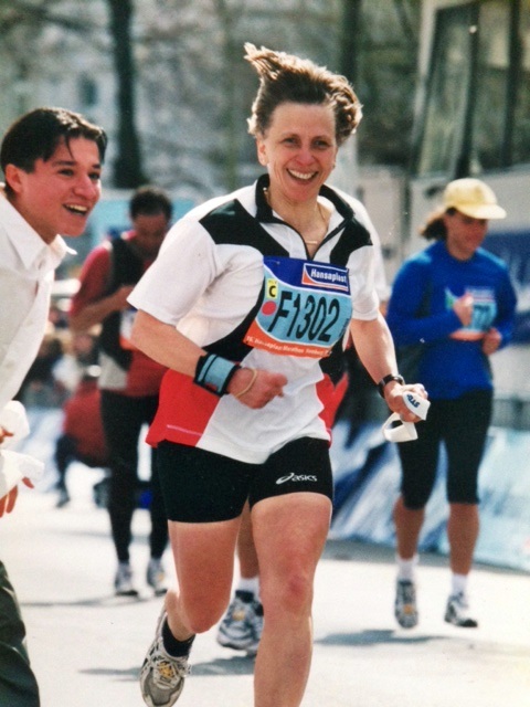 Meinen 1. Marathon lief ich am 22.04.2001 in Hamburg. Das war für mich eine enorme Leistung, da ich dachte, dass nur junge Leute Marathon laufen. Ich war zu dem Zeitpunkt immerhin 49 Jahre alt und hatte mit Marathon „nichts am Hut“. Mit einem wahnsinnigen Trainingsaufwand schaffte ich es allerdings nur zu einem 05:12:27! Im Ziel empfing mich mein Sohn und freute sich, dass seine Mutter so sportlich sein konnte.