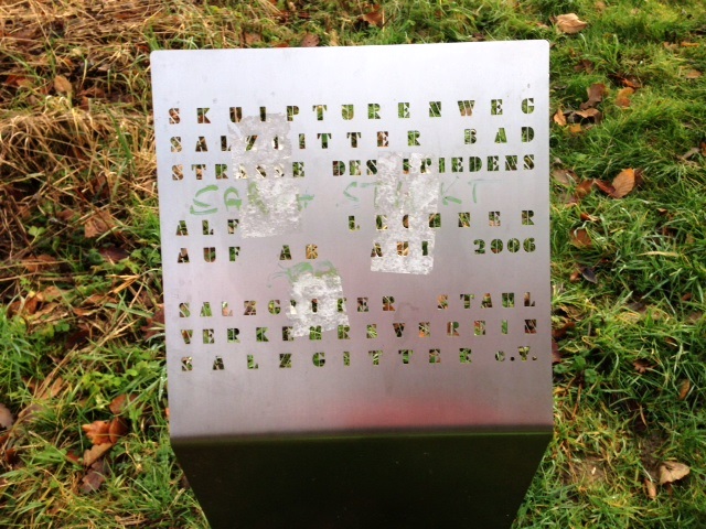 Da ich mich heute für eine extrem langsame Laufzeit entschieden hatte, bekam ich aufgrund des schönen Laufwetters genug Gelegenheit, zu fotografieren. Andrè, der den Lauf etwas später antrat, musste sogar kurz anhalten, damit ich diesmal von ihm ein vernünftiges Foto in meinen Bericht setzen konnte. Die Laufstrecke beinhaltet einige eigenartige bis hübsche Skulpturen und heißt deshalb auch „Skulpturenweg“.