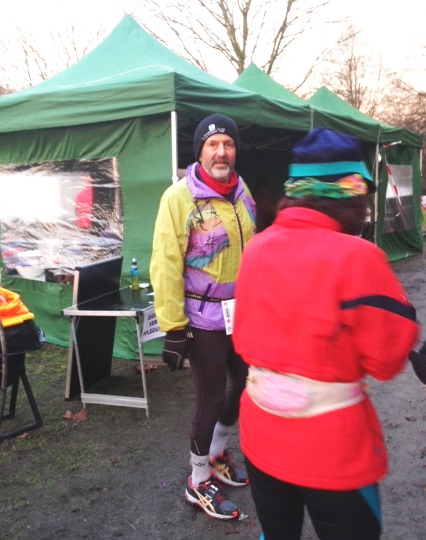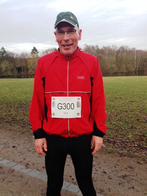 Dann hörte ich ein freundliches „Hallo, Gunla!“ hinter mir. Das war Gerd Junker, der sich freute, als er mich sah und sich Zeit nahm, um mit mir zu klönen. Ich machte von ihm ein Foto. Er hatte die Startnummer 300, da er heute seinen 300. M/U lief. Herzlichen Glückwunsch, Gerd! Heute waren alle 100 MC-Läufer in Trainingslaune. Keiner der Läufer schien es besonders eilig zu haben.