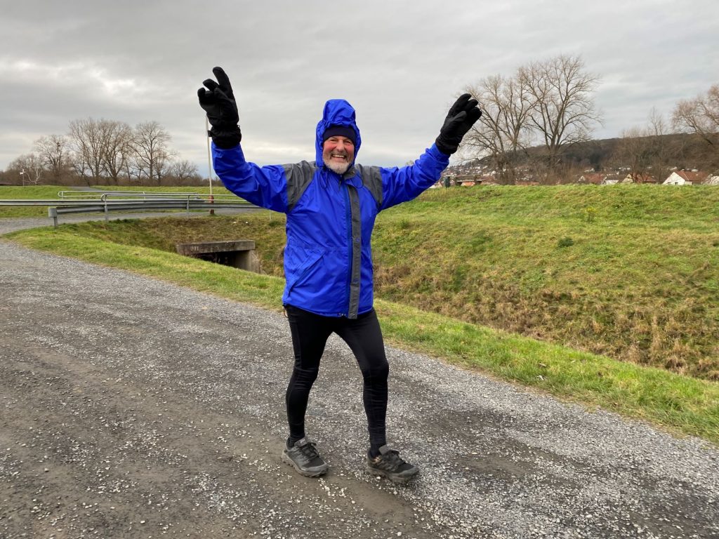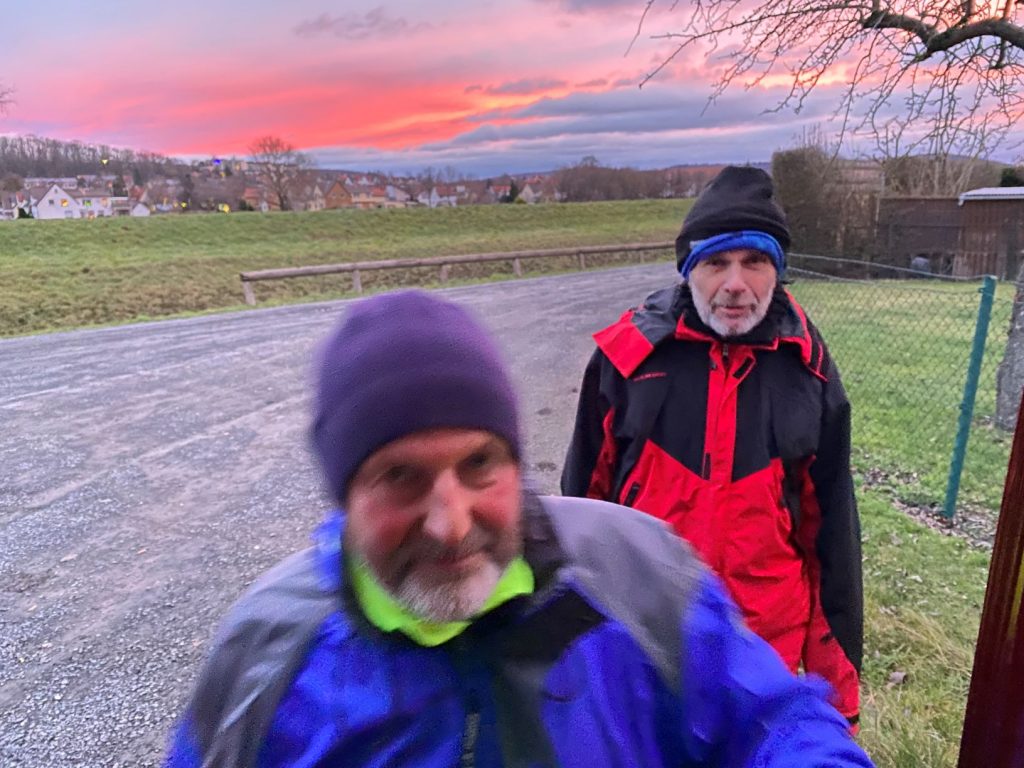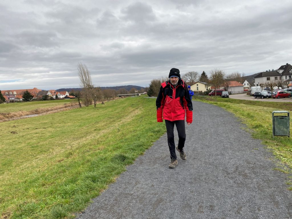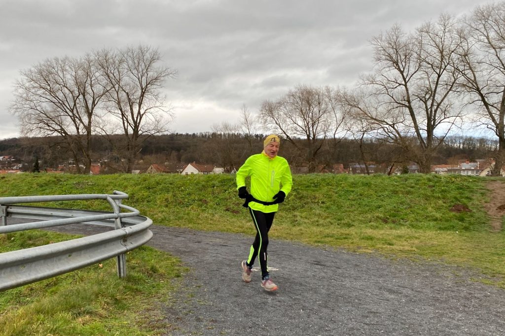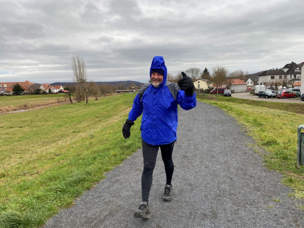 Da Didi und ich am Vortag der Veranstaltung bei Michael angereist waren und einen guten Stellplatz für das WoMo hatten, zogen wir uns dick an, …… verriegelten das WoMo … … und beschlossen, uns einen Einblick von der Laufstrecke zu verschaffen.Die untergehende Sonne sorgte zusammen mit den schon vorhandenen Farben am Himmel für eine interessante Farbmischung. Im Vordergrund ist das TGN Haus (Tennis-Turngemeinde Northeim) zu sehen.Ich warf einen Blick in Richtung WoMo-Stellplatz. Es schien alles in Ordnung zu sein. So würde auch Didi am nächsten Tag keinen „Tunnelblick“ bekommen, sondern seine Verpflegungsstelle gleich sichten.In der Ferne erblickte ich die Rhumebrücke, eine Eisenbahnbrücke aus dem Jahr 1851.Die Farbe der untergehende Sonne dominierte am Himmel. Didis Gestalt vervollständigte das Bild und wirkte dazu wie das Titelblatt eines Kriminalromans. Eine weitere Eisenbahnbrücke über die Rhume entstand um1982. Das ist die ICE-Strecke Hannover- Würzburg.Die Laufstrecke scheint überwiegend flach und der Untergrund leicht laufbar zu sein, wenn man es bevorzugt, schnell zu laufen. – Im Hintergrund zeigt sich nochmal die „alte“ Eisenbahnbrücke in ihrer ganzen Schönheit. Bald sollte sich die Sonne ganz von uns verabschieden. Der Himmel schien das Wetter für den nächsten Tag verraten zu wollen. Sollte er Recht bekommen?Der Vorbote des Wetters am nächsten Tag schien die Rhume an dieser Stelle zu sein. Die Rhume hatte es wohl eilig, die Leine zu begrüßen. Der Fluss Rhume ist etwa 48 km lang, entspringt im südlichen Harzvorland und mündet in die Leine nahe Northeim. Bis zur Mündung in die Leine in der Nähe von Northeim überwindet das Wasser der Rhume insgesamt einen Höhenunterschied von 44 Metern. Heftige Windböen hatten Didi und mich nur wenige Stunden schlafen lassen. Unausgeschlafen und müde stellte ich am nächsten Morgen, von außen gut sichtbar, die läufergerechte Verpflegung für Didi bereit.Didi und Werner wollten gemeinsam früh starten. Während ich auf Didi und Werner wartete, die bald ihre 1. von 5 Runden geschafft haben mussten, schien mir die Sonne ein fröhliches „Guten Morgen!“ zuzurufen. Die schönen Farben einer aufgehenden Sonne wirkten etwas geheimnisvoll, wollten jedoch das Geheimnis erst im Laufe des Tages lüften.Licht in unterschiedlichen Farbtönen sorgt immer für eine romantische und emotionale Stimmung. Im Hintergrund gingen nach und nach die Lichter in den Häusern an. Diese Kulisse wirkte fast wie ein wertvolles Kunstbild. „Hallo!“ rief da jemand. Didi und Werner hatten die 1. Runde hinter sich! Werner posierte brav zum Bild der aufgehenden Sonne, während Didi halb inkognito zum Weiterlaufen drängte. – Ich muss zugeben, die Farbe von Werners Jacke beißt sich mit der Farbe des Himmels. Der Wind schien in Sturm überzugehen. Da war ich froh, …… dass ich im warmen WoMo sitzen durfte. Später verließ ich auch mal das WoMo, um …… die gut zu erkennende Streckenmarkierung des Veranstalters Michael bestätigen zu können und meine Rolle als Paparazzi wahrzunehmen.Trotz des inzwischen zunehmenden Windes, man könnte es auch Sturm nennnen, lief Sylke später als Siegerin in 4:23:41 ins Ziel. Gratuliere, liebe Sylke! Frank lief für LC Marathon Rotenburg und schaffte den Marathon in 5:23:27! Hut ab! Der Frank lief alle 5 Runden mit einem Lächeln im Gesicht und wirkte motiviert. Er hatte vor, irgendwann die 100er Grenze zu erreichen. Weiter so, Frank! Es sollte ein ganz besonderer Tag für Peter werden. Mit einer Zeit von 5:26:04 lief er zeitgleich mit Heike seinen 200. M/U! Gratuliere, Peter! Das Ziel, in der Weltrangliste aufgeführt zu werden, rückt immer näher! Ein Dankeschön verdient Heike, die den Peter an diesem Tag so unterstützt hat. Auch der Veranstalter war auf leichten Sohlen unterwegs, pandemiegerecht gefolgt von Detlef, der nach 4:28:26 die Ziellinie überquerte. Gratulation! Michael war etwas schneller. Er schaffte den Marathon in 4:22:58. Gratuliere, Michael!Katrin genoss die Wetterbedingungen und freute sich über die Zeit 4.28:26. Auch dir Gratulation für die gute Zeit, Katrin! Der wahre Sieger an diesem Tag hieß Jörn. Weder der eisige Wind noch die fehlende Sonne schien den Jörn zu beeindrucken. Er genoss den Lauf in vollen Zügen. Seine Zeit lässt sich sehen: 3:30:07! Hut ab, Jörn! Die Kälte und der eisige Wind schienen auch dem Ulrich nichts auszumachen. Gut gelaunt bewältigte er seinen Marathonzähler in 4:55:14! Super, Ulrich!Gegenseitige Aufmunterung zur Motivation ist immer sehr wichtig. Ich hatte mich inzwischen im WoMo aufgewärmt und entschied mich, Werner und Didi entgegenzugehen. Werner und …… Didi waren bester Laune. Didi hatte sich inzwischen dickere Handschuhe angezogen und freute sich mit Werner, in der letzten Runde zu sein. Dieser sehr hübsch geschmückte Baum zeigte allen, dass Weihnachten noch nicht vorbei war. Hier ruht die Rhume auf ihrem Weg zur Leine. Bevor Peter sich auf die Zielgrade begab und sich dabei einen kleinen Sprint erlaubte, musste er sich in eine „Siegerpose“ begeben. Alles Gute und viel Spaß beim Sammeln der nächsten Läufe, lieber Peter!Werner war heute etwas vor Dietrich im Ziel: 8:07:55. Gratuliere, Werner! Sichtbar erleichtert, den Lauf hinter sich gebracht zu haben, erklärte er mir, dass der Didi gleich kommen würde. Da ist er ja, der Didi! So sieht ein „Sieger“ aus! Der Zieleinlauf war zwar noch nicht beendet, aber hier lief es sich so schön bergab. Die gesuchte Hahnzeit: 8:13:02! Gratuliere, Schatzi! Bei den Wetterbedingungen war der Lauf schon eine Herausforderung.