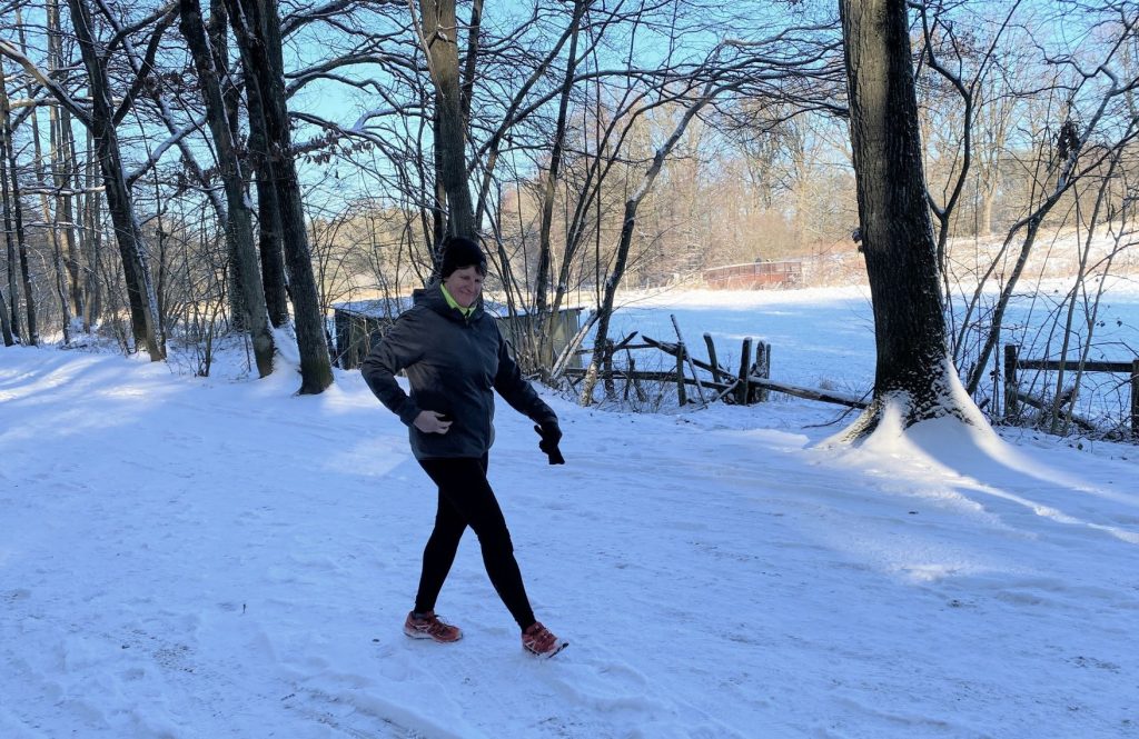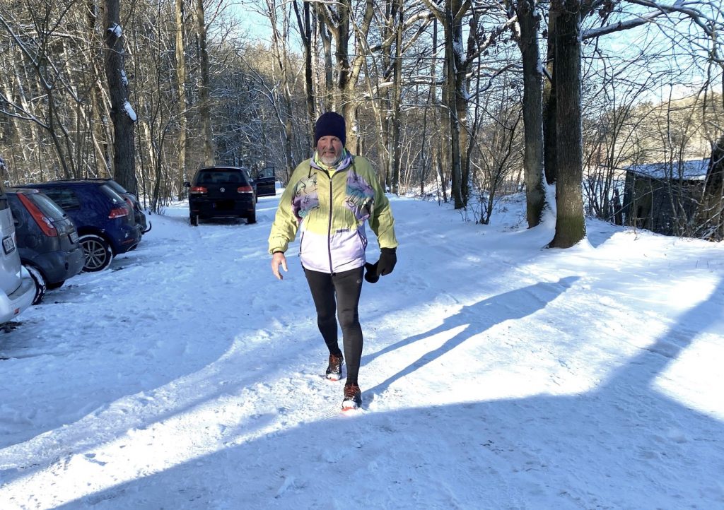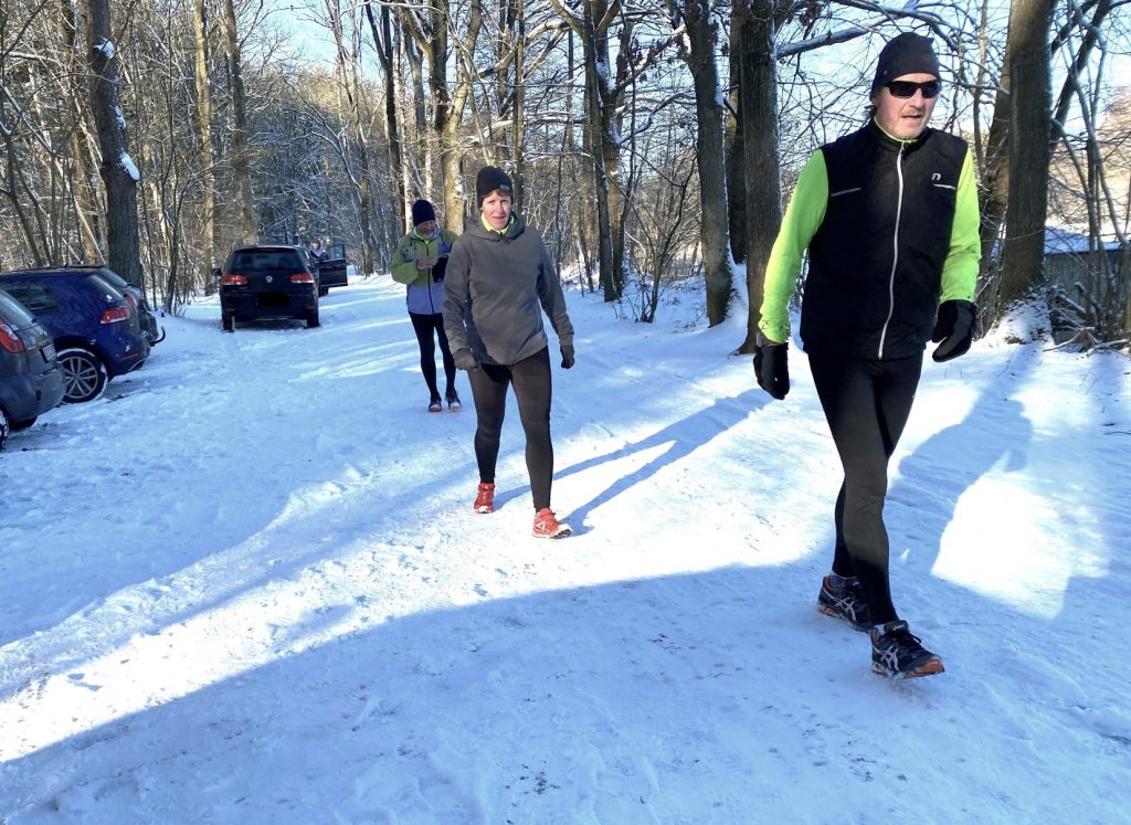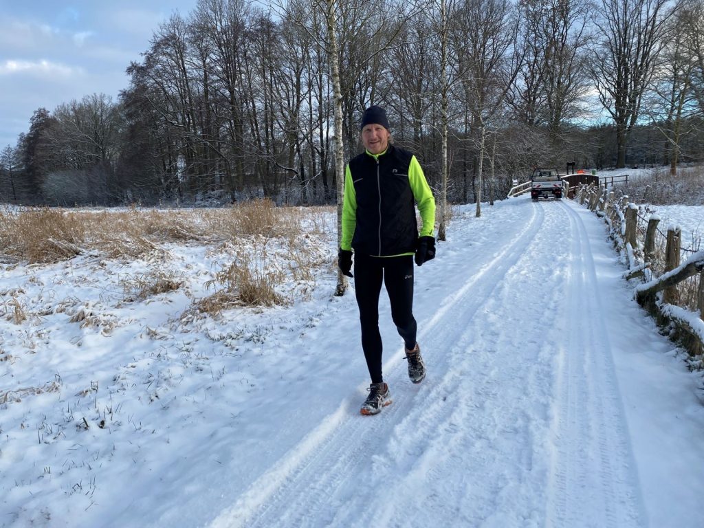 … da empfing mich ein wunderschöner, weißer und zugedeckter Vorgarten. Es war noch dunkel. Didi und ich machten uns an diesem Tag gegen 5.45 Uhr … … auf den Weg zu einem weiteren Individualmarathon in Bad Bramstedt. Der Weg führte uns vorbei an der Köhlbrandbücke, die in der Dunkelheit hell beleuchtet noch schöner wirkte als tagsüber. Seit dem 23. September 1974 verbindet die Köhlbrandbrücke in Hamburg die Elbinsel Willhelmsburg mit der Bundesautobahn 7.Kurz nach 6.00 Uhr lief Didi mit seiner Stirnlampe los. Er hatte gewisse Bedenken, mit dem WoMo den Waldweg zum Parkplatz (Start des Individualmarathons) zu fahren. Aber, wer Herausforderungen liebt, der riskiert auch was! Didi fuhr also den ziemlich zugeschneiten Waldweg entlang, stellte dann das WoMo auf den Parkplatz in optimaler Parkposition, „ready to start“ nach dem Finish des Laufes. Langsam wurde es hell. Affenzahn war inzwischen auch angekommen, wünschte mir einen „Guten Morgen“, machte sich bereit und startete seine Laufuhr für seine individuelle Zeitnahme. Doris und Mario waren inzischen auch vor Ort, um heute individualsportlich tätig zu sein. Kleidung, Laufschuhe und Zeituhr deuteten auf jeden Fall darauf hin. Doris blickte etwas skeptisch auf die Bodenverhältnisse. „Vielleicht hätte ich mir heute meine Spikes unter die Schuhe schnallen sollen?“Christian kam ohne sein Cappy und startete mutig die erste Runde ohne Kopfbdeckung. Die Initiatoren des Individualmarathonlaufes in Bad Bramstedt, Dieter und Rita, waren dem Wetter entsprechend gekleidet und freuten sich auf die Strecke.Arne war auch gekommen und machte sich bereit, nach dem „Runterzählen“ zu starten.Die Entscheidung, sich doch noch eine Kopfbedeckung aufzusetzen, bereute der Christian nicht. Dabei fiel ihm ein, dass er seiner Frau auch mitteilen wollte, dass er gut in Bad Bramstedt angekommen war. Den Rucksack schnallte er anschließend wieder auf den Rücken und startete erneut durch.Die Blätter hatten mit Hilfe des Schnees eine „warme“ Pudelmütze bekommen. Steht ihnen doch gut, oder?Affenzahn und Christian kasperten rum und freuten sich auf jede weitere Runde.Mario war leichtfüßig, schnell und vergnügt unterwegs. Er strahlte mit der Sonne um die Wette.Doris freute sich so über den Schnee, dass sie es nicht lassen konnte, einen Schneeball (roter Pfeil) in die Luft zu werfen. Die Sabine bekam etwas von dem Schneeball ab und …… lief deshalb die kleine Steigung etwas vor Doris hoch.Klaus war heute schnell. Er bekam von mir die Haltungsnote 1.Jetzt freute ich mich, denn die Sonne kam durch. Ich musste tief durchatmen, als ich den Blick auf den schneebedeckten Weg zur Jägerbrücke im Hintergrund warf. Die Sonne schien und es war vollkommen windstill. Ich kam mir vor wie im Schneeparadies.In der Schmalfelder Au waren ein paar Zweige „zusammengerückt“ und der Schnee bedeckte sie fürsorglich. Die Au hielt still, damit die Schneedecke auch in Position bleiben konnte. Die Natur ist eben erfinderisch.Klaus freute sich über das schöne Wetter und den Schnee. Man musste nur da aufpassen, wo der Schnee festgetreten war, denn an diesen Stellen war es glatt.Winter, Schnee und Sonnenschein, das sind optimale Bedingungen für einen Spaziergang oder einen Lauf in einer traumhaften Landschaft. Dichter Schnne bedeutet allerdindings für viele Tiere einen Nahrungsengpass. Die Luft ist kalt und die Landschaft liegt still wie in Watte gepackt. Tierspuren im Schnee erzählen und verraten manchmal, welches Tier seine Spur und warum hinterlassen hat. Hier könnten ein Schneehuhn und eine Amsel in gemeinsamer Arbeit nach Futter gesucht haben.Die Jägerbrücke überquerte Doris …… im leichtfüßigen Tempo und gut gelaunt. Ich war ja auch für die Versorgung …… vom Didi verantwortlich und begab mich zurück zur Verpflegungsstelle, bei der Affenzahn und Christian ihre Bestellung „Bratwurst und Pommes rot – weiß“ abgeben wollten. Das war ja nun nicht möglich. Im Hintergrund registrierte Didi deren Wunsch und meinte: „Pech gehabt, das ist meine private Verpflegung!“Nicht nur die Sonne schien. Auch Doris strahlte, als sie am WoMo vorbeilief. Das Wetter war heute wirklich schön.Sabine und Arne liefen dynamisch im Gleichschritt und bekamen beide die Haltungsnote 1 von mir.Rita und Dieter haben immer gute Laune. Danke, Dieter! Du hast das gute Wetter bestellt! Danke, Rita! Du hast die gute Laune mitgebracht!Ich genoss meine kleinen Walkingausflüge in vollen Zügen und merkte, wie gut es einem tut, wenn die Sonne scheint und kein eisiger Wind zu spüren ist, so dass auch ich ein wenig zum Individualsport kam. Die Sonne zauberte die ohnehin schöne Landschaft zu einem Schneeparadies. Schluss mit der Träumerei! Affenzahn erschien und wollte mit mir Schneeglöckchen suchen. Aber ich konnte ihn überzeugen, dass eine zu dicke Schneedecke ein Auftauchen der Schneeglocken nahezu unmöglich machte.Ich fühlte mich in meiner dicken Winterjacke pudelwohl. Christian hatte eine perfekte Laufhaltung und war wie immer gut gelaunt!Inzwischen hatte Mario seine Sonnenbrille aufgesetzt, denn die Sonne stand tief am Himmel. Doris schien immer noch motiviert zu sein und wollte ohne Trinkpause weiterlaufen. Didi wollte eine halbwegs akzeptable Hahn – Weber – Zeit erreichen und begutachtete seine bis zu diesem Zeitpunkt gelaufene Zeit.„Jetzt brauche ich eine Stärkung!“ Ich reichte dem Didi einen Becher Tee und danach ging er in die nächste Runde.Christian nahm Anlauf und lief in die letzte Runde. Er sollte bald fertig sein und freute sich!Die Sonne hatte sich fast ganz verabschiedet, als Didi den Zieleinlauf erreichte. Noch war er nicht im Ziel. „Zwei Minuten noch!“ Dann …… lief er, überglücklich über seine neue Hahn – Weber – Zeit, ins Ziel!