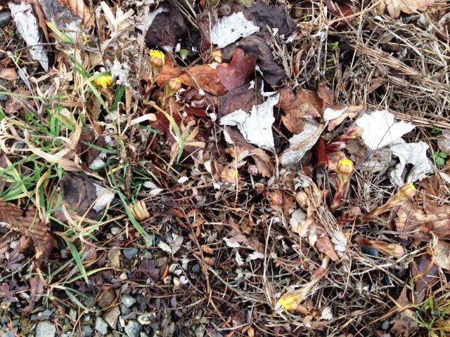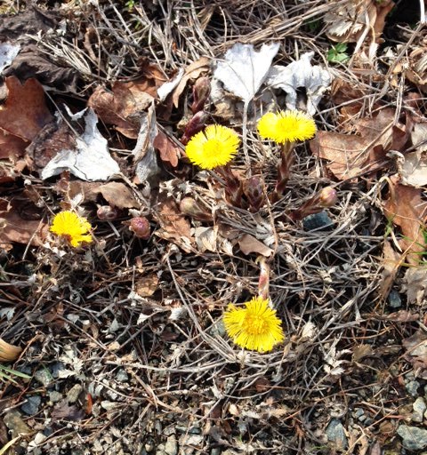 Bevor die Sonne doch noch ´rauskam, konnte man beim langsamen (!) Laufen auch die Tussilago (auch Huflattich genannt) entdecken. In „Meyers Taschenlexikon“ steht zu lesen: „Huflattich (Tussilago), Gatt. der Korbblütler mit der einzigen, auf der Nordhalbkugel verbreiteten Art Gemeiner H.; Acker- und Schuttunkraut“.