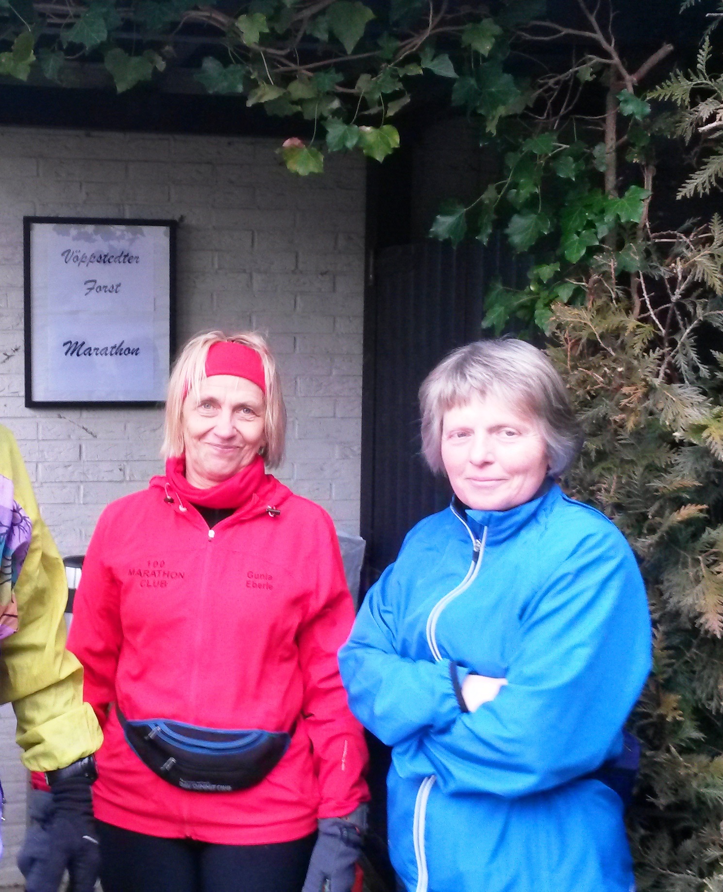 Kurz vor dem „Startschuss“ kam Brigitte. Auch sie freute sich über Marcs Eintritt in den 100 Marathon Club. Dann machten wir uns alle bereit für den heutigen Start. Laut iPhone war es um die 0° beim Start.