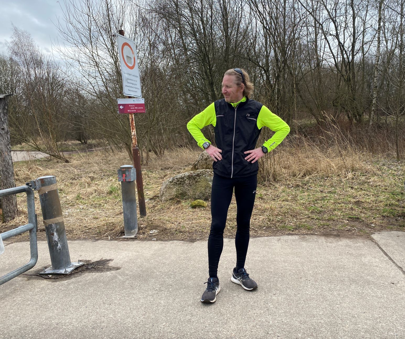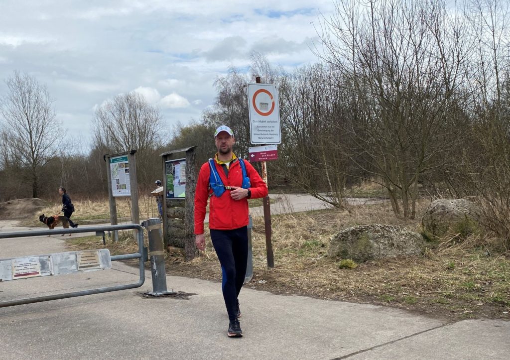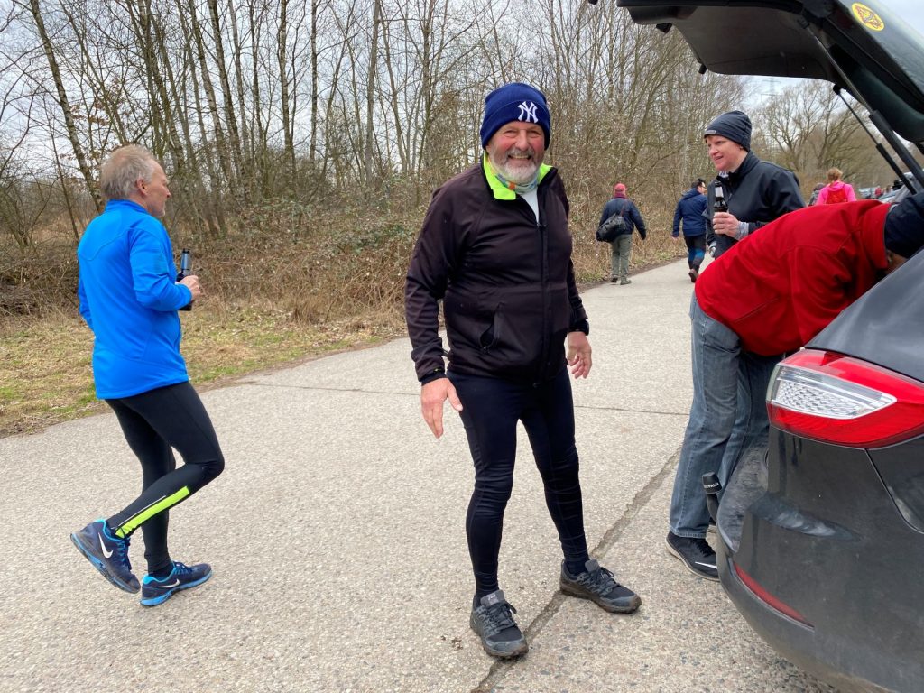 Es sollte heute etwas zu feiern geben. Didi hatte sich vorgenommen, im Naturschutzgebiet Höltigbaum einen Individualmarathon zu laufen und war einer der Jubilare. Wie immer starteten wir unsere Anfahrt rechtzeitig, damit Didi die Gelegenheit eines Frühstarts nutzen konnte.