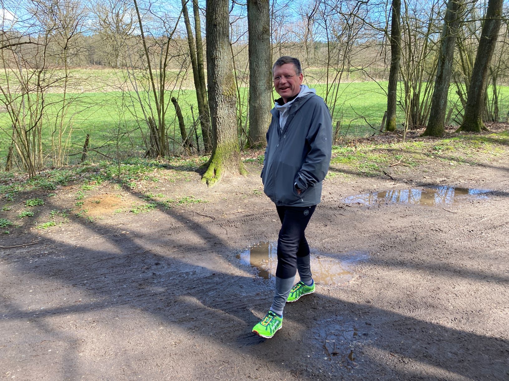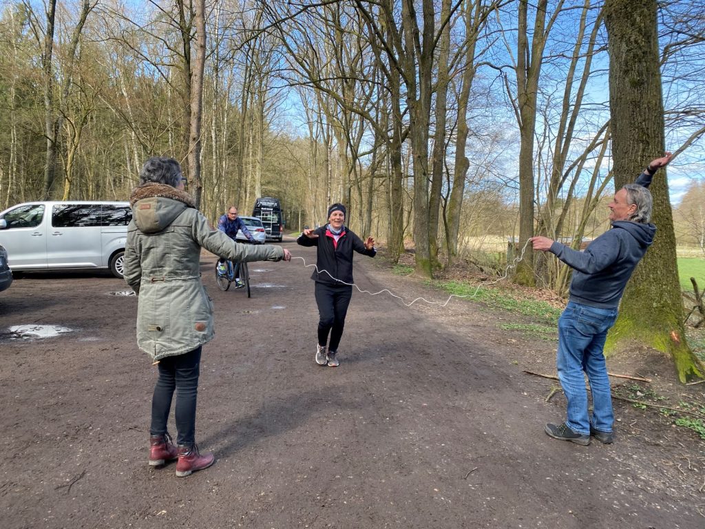 … auf der A7 nach Bad Bramstedt fuhren. Wunderbar erleuchtet sahen wir rechts die Köhlbrandbrücke, die auch die „Golden Gate Bridge“ von Hamburg genannt wird. Diese imposante Schrägseilbrücke im Hambureger Hafen gehört zu den absoluten Wahrzeichen der Hansestadt. Die Köhlbrandbrücke wurde von 2014 bis 2016 aufwendig saniert. Weiter ging es dann durch den Elbtunnel. Der Neue Elbtunnel wurde von 1968 bis 1974 gebaut. Heute ist er einer der längsten vierröhrigen Unterwasserstraßentunnel weltweit.Kurz nach 6:00 Uhr kamen Didi und ich im Kurort Bad Bramstedt an. Bad Bramstedt ist als Moorheilbad anerkannt, liegt in der Mitte des Holsteiner Auenlandes im südlichen Schleswig-Holstein und trägt den Titel „Bad“ seit 1911.Das WoMo wurde in die best mögliche Parkposition gestellt. So hatte ich den besten Überblick, wann Didi an der Verpflegung erschien, um den Früchtetee in Empfang zu nehmen.Didi startete gegen 6:22 Uhr und war jetzt unterwegs. Die Runde (etwa 2,66 km lang) musste 16 Mal glaufen werden. Ich nutzte diese erste „Rundenzeit“ dazu, frische Luft zu holen und …… die interessante Vegetation fotografisch festzuhalten. Der Regen der letzten Tage sollte hier und da eine Herausforderung für die Läufer sein, zu zeigen, wie sie sich geschickt über einen matschigen Boden bewegen können. Insekten und Vögel hatten den Vorteil, schlückchenweise das Wasser, das von den Blättern der Pflanzen aufgefangen wurde, zu trinken. Die Natur regelt vieles allein.Moos kann zu einem richtigen Hingucker werden. Dieser mit Moos bedeckte Stein (vermutlich „Goldenes Frauenhaarmoos“) erinnerte mich an jemanden, der seinen Frisörtermin nicht ernst genommen hat.Das Goldene Frauenmoos bevorzugt einen feuchten und leicht sauren Untergrund. Rosi und Cindy bevorzugten anscheinend auch einen feuchten Untergrund. Cindy liebt diese Art von Indivdualmarathonläufen. Doris und Mario machten sich für den 12. Individualmarathon im Kurort Bad Bramstedt startklar. Das Outfit der Doris war farblich perfekt abgestimmt, wie ich finde.Klaus bekommt für seine „ready to start“- Haltung die Note 1.Karsten war extra früh gekommen , um seinen Individualmarathon zu laufen und erzählte mir voller Begeisterung, dass er viele Rehe gesehen hatte und an der Jägerbrücke vor einer Entenfamilie Platz machen musste. Dabei blickte er in Richtung Jägerbrücke. Ich finde es toll, wenn Läufer nicht nur laufen, sondern sich auch für die Tier-und Pflanzenwelt so begeistern können. Als Didi seine Verpflegungsstelle ansteuerte, warf er wegen seiner bevorstehenden Hahnzeit einen kurzen Blick auf seine Uhr, trank den für ihn bereitgestellten Tee aus, bestätigte Karstens Schilderung und lief weiter in die nächste Runde.Das Buschwindröschen ist ein typischer Frühblüher. Sie profitiert im Frühjahr von der Lichteinstrahlung und Wärme direkt über dem Boden.Am Wegesrand bewunderte ich das satte Grün der Vegetation. Der Frühling schien ganz nahe zu sein.Ein beeindruckendes Bild, das mich an einen Kriminalroman erinnerte. Evenuelle imaginäre Geräusche heulender Wölfe oder das Bellen von Hunden, die auf Wildschweinjagd sind, nahmen immer mehr Platz in meiner Fantasie.In der Ruhe liegt die Kraft der Natur. Jeder WaldbesucherIn sollte die Natur bewundern und dankbar sein, dass … … wir so ein schönes und unberührtes Stück Landschaft genießen dürfen.. Ich vergaß fast die Läufer. Dass Mario das Laufen mag, das ist nicht zu übersehen. Haltungs- und „Gutelaunenote“: 1So plötzlich, wie der Mario auftauchte, so schnell war er am Horizont veschwunden.An diesem Tag durften auch die Pferde auf ihrer Koppel frische Luft schnappen und die ab und an auftauchende Sonne genießen.„Schau mal, ich habe neue Schuhe!“ Doris zeigte voller Stolz ihre neuen Laufschuhe, die farblich sehr gut zu ihrer Jacke passten. Ich musste immer wieder die grüne Farbe der Pflanzen bewundern.Klaus hatte an diesem Tag gute Laune und war dabei leichtfüßig unterwegs.Karsten genoss das frühlingshafte Wetter und lief in kurzer Hose. Dieses Prachtexemplar an Gehäuseschnecke musste ich unbdingt fotografieren. Gehäuseschnecken werden mit Haus geboren. Sie schlüpfen schon mit einem winzigen Haus aus dem Ei. So lange die Schnecke wächst, wächst auch das Haus mit.Affenzahn (vorn), Rita und Dieter ließen sich heute sehr viel Zeit und wollten das schöne Laufwetter zu genießen.Arne im coolen Outfit wollte den bestehenden Weltrekord eines Marathonläufers von 1:59:40 knacken. Er entschied, es mit dem Fahrrad zu versuchen.Als ich dem Martin das erzählte, schien er darüber nur zu schmunzeln. Aber, kaum hatte ich es ausgesprochen, …… da kam der Arne schon vorbeigehuscht. Er war richtig schnell! Zwischendurch hatte ich Zeit, die Tränke der Insekten zu bewundern. Doris H. wollte mich für meine Paparazziarbeit loben und bot mir einen Keks an.Mit seinem Rad schaffte Arne nicht ganz mühelos einen Marathon in 1:53:18 zurückzulegen Mit diesem Versuch wollte Arne nur zeigen, wie schnell ein Marathonläufer auf Weltrekordkurs unterwegs ist. Gratulation! Das Experiment ist dem Arne gelungen!Martin freute sich auf die nächste Runde. Er bestätigte jede der16 Runden mit einem Strich auf einem kleinen Block. Mario war fertig und schien mit seiner Laufzeit zufrieden zu sein. Er nahm sich Zeit für einen Klönschnack, bevor er nach Hause fuhr.Freunde von Doris H. spannten eine Schnur als Ziellinie. Doris freute sich, einen Zähler geschafft zu haben.Auch Christian hatte gefinisht udn freute sich, dass er jetzt mehr vom Tag haben konnte.Affenzahn hatte es nicht sehr eilig. Er musste noch ein paar Runden.Cindy ist ein gut erzogener Hund. Wenn sie den Lauf gefinisht hat, setzt sie sich auf die Ziellinie, leckt sich über die Schnauze und wartet geduldig auf ihre Belohnung. Rosi, du kannst stolz auf deinen Hund sein!Doris war im Ziel! Super, Doris! Gefinisht hatte sie allerdings mit den alten Laufschuhen.Vor der Ziellinie zeigte 