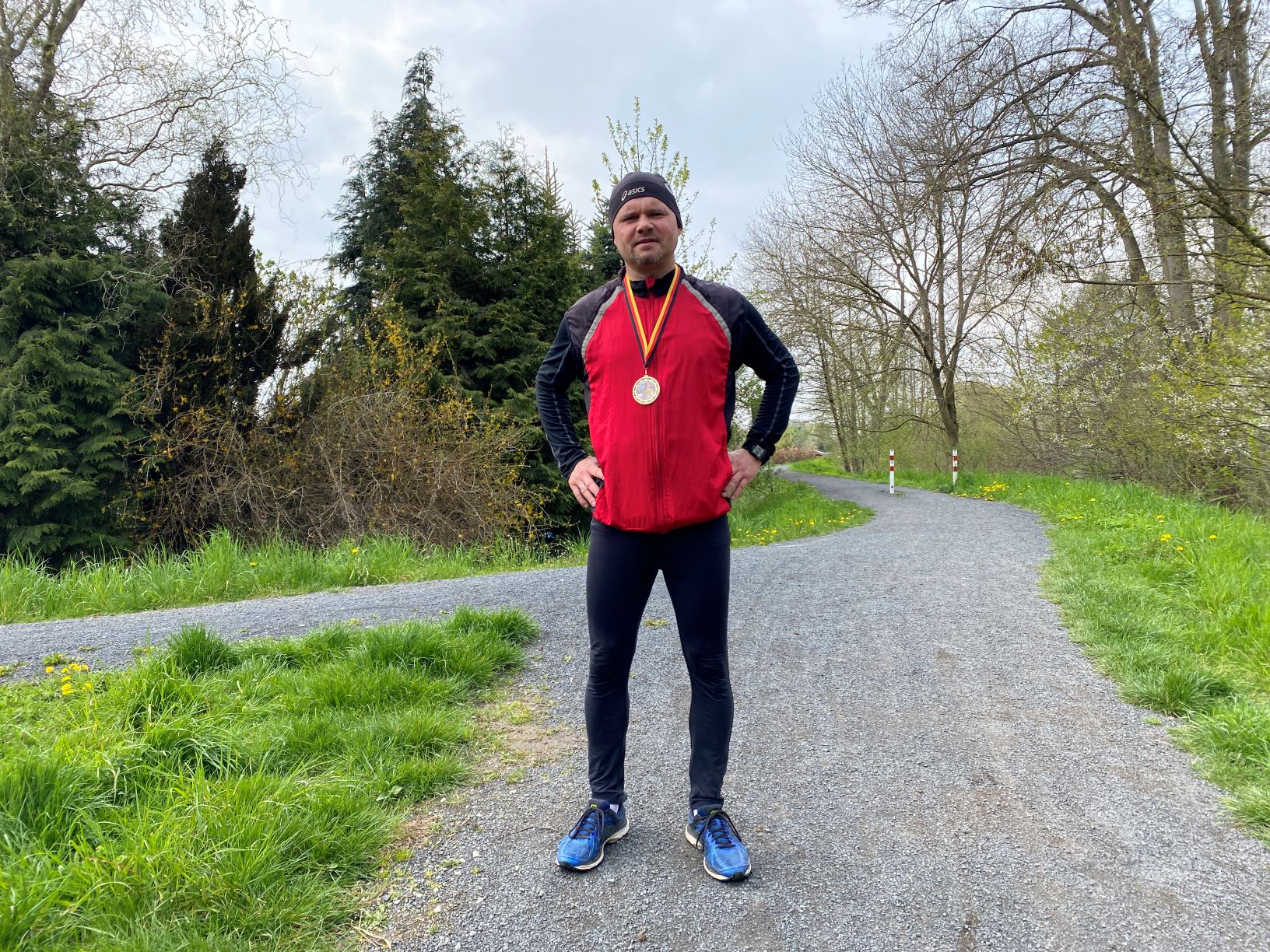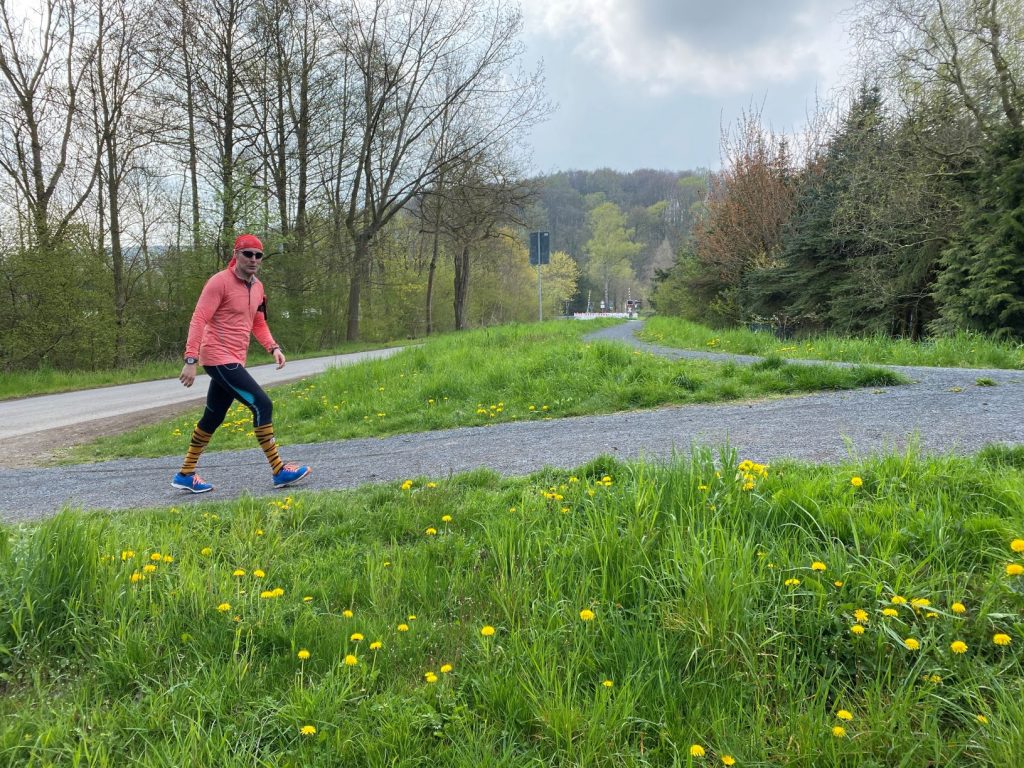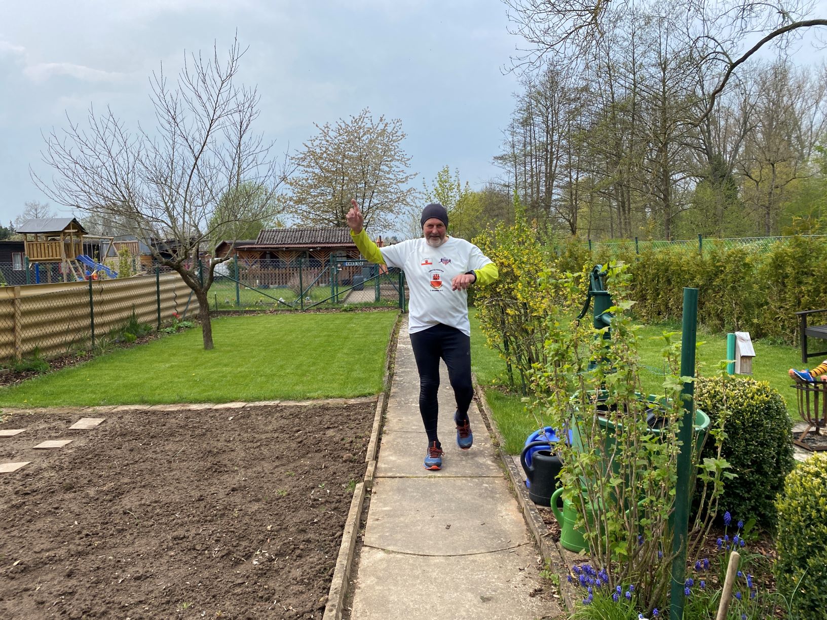 … Hahnzeit für DidiDen 1. Mai 2021 wollten Didi und ich in Northeim verbringen. Das hatte einen bestimmten Grund. Wir wollten dabei sein, wenn Michael seinen 900. M/U lief. Die Anreise folgte schon am Vortag, dem 30.04.2021. Didi parkte das WoMo und wir gönnten uns einen kleinen Spaziergang am Rhumekanal, der mit Hilfe eines Wasserkraftwerkes Strom erzeugt.Eine Stockente mit weiblicher Begleitung Die Stockente gehört zu den Schwimmenten. Stockentenerpel sehen, wie es bei den meisten Entenearten der Fall ist, anders aus als ihre Weibchen. Die Weibchen sind recht unscheinbar in hellem Braun mit dunkelbraunen Federzentren. Dies ist einer der Abflüsse aus dem Rhumekanal in das alte Flussbett der Rhume.Die Ahorne sind Laubbäume mit Blättern, die ungefähr die Form einer Hand haben. In unseren Städten ist der Spitzahorn einer der häufigsten Bäume. Im Frühling blüht er vor vielen anderen Bäumen und sorgt für ein frisches, helles Grün. im Herbst verliert er seine Blätter als letzter.Didi hatte einen Frühstart bei Michael angemeldet und startete pünktlich um 5.51 Uhr an der Pforte zu Michaels Kleingarten. Es ging zunächst, wie auf dem Foto zu sehen ist, eine kleine Steigung hoch und nach etwa 100 Metern … … fangen die 6 ganzen Runden (ca. 6, 5 Kilometer) + ein Pendelstück von etwa 4 Kilometern an. Didi freute sich auf die ihm schon bekannte Strecke!Der Jubilar hatte richtig gute Laune und startete etwas später mit der Sprühdose in der Hand. Er wollte die kniffligen Passagen markieren, was ja ganz wichtig ist, wenn man die Strecke nicht kennt.Ich schaute mich ein wenig in Michaels sehr geflegtem Kleingarten um. Michael ist im Besitz eines Kajaks und war schon einige Male darin unterwegs.Ein echter Hingucker in Michaels Kleingarten ist die Gold-Johannisbeere. Die Gold-Johannisbeere ist ein aufrechter, straffer Strauch, der goldgelbe, in Trauben angeordnete Blüten mit einem angenehmen Duft hervorbringt. Die Blüten erscheinen von April bis Mai. An den Boden stellt die Gold-Johannisbeere keine besonderen Ansprüche. An einem sonnigen bis schattigen Standort erreicht dieser Strauch gewöhnlich eine Höhe von ca. 3 Metern und wird ca. 3 Meter breit. Die Gold-Johannisbeere trägt ihren Fruchtschmuck im Herbst zur Schau. Die erbsengroßen Früchte sind schwärzlich bis purpurbraun, herbstsauer und nicht für den Verzehr geeignet.Auch vor Michaels Kleingarten entdeckte ich hübsche Pflanzen, z.B. die Acker-Gänsedistel. Michael war gut gelaunt unterwegs. Die intensive gelbe Farbe des Rapsfeldes vermittelte den Eindruck eines wunderschönen Landschaftslaufes. Später kam, zur Feier des Tages, auch noch die Sonne durch. Was konnte sich denn der Michael noch mehr wünschen? ( Danke, Didi für das Foto! )Sara war auf dem Weg zum Start, als ich sie um ein Foto bat. Sie kannte die Marathonstrecke nicht, war aber zuversichtlich.Das Wetter sah vielversprechend aus, meinten auch die Enten. Lautstark suchten sie sich einen Landeplatz.Auch Schneggi kam, um bei Michael im schnellen Walkingschritt den Marathon zu schaffen.Ach! Wen haben wir denn hier? Das ist unser aller Marc! Ihn hatten Didi und ich lange nicht gesehen, hatten uns eigentlich doch viel zu erzählen. Leider hatte Marc keine Zeit, da er nach dem Lauf seine Mutter zu Besuch haben sollte. „Bis demnächst in Salzgitter Bad zum Fotoshooting im Vöppstedter Forst!“Petra (links) und Katrin waren heute schnell unterwegs. Auch Lars zeigte eine formidable Laufgeschwindigkeit. Ich musste mich ganz schön konzentrieren, um vernünftige Laufbilder zu bekommen.Sylke rief mir fröhlich „Guten Morgen!“ zu und lief wie immer leichtfüßig, locker und schnell.Zwischendurch musste ich ein Selfie knipsen. Könnt Ihr meine Falten erkennen?Andreas erinnerte mich daran, dass wir uns mal in Grünheide getroffen und abends mit Sigrid, Hajo und Didi gequatscht hatten.Irgendwann traute sich die Sonne raus aus ihrer Wolkendecke und gab mir einen wunderschönen Blick über die Kleingärten.Der Raps blüht. Diese Pflanzenart aus der Familie der Kreuzblütengewächse ist eine wirtschaftlich bedeutende Nutzpflanze.Genutzt werden die Samen vor allem zur Gewinnung von Rapsöl. (Danke, Didi für das Foto, das du bei Kilometer 2,5 aufgenommen hast!)Am Rhumekanal strahlten die Buchenblätter …… mit dieser mir leider unbekannten Pflanze um die Wette.Ich drehte mich um und sah den Jörn in einem Wahnsinnstempo vorbeilaufen. Er hatte jedoch Zeit, mir fröhlich zuzuwinken.Zwischendurch musste auch der Kontakt zur Zivilisation aufgebaut werden. Anschließend flitzte der Ulrich weiter.Andreas lief in eine seiner letzten Runden und war immer noch guter Laune.Sara hatte … … wie Friedrich auch, Freude am Laufen. Über „Funk“ wurde diese Bestellung von Didi aufgegeben.Im Gleichschritt und mit dem vorgeschriebenen Abstand liefen Michael und Joachim in eine weitere Runde.Schnell, schneller, am schnellsten!Drei Gazellen und der Lars bei Kilometer 1,5 (Foto Didi)Auch René hatte heute ein rasantes Tempo drauf. Sven gehörte an diesem Jubiläumslauf zu den schnellsten Läufern. Gratuliere zum Finish und der Medaille!Didi stärkte sich am WoMo, bevor er weiterlief .Friedrich und Sara liefen zusammen schneller als jeder für sich. Haltungsnote: 1Michael und Joachim hatten die ganzen Runden ein recht schnelles Tempo drauf. Ihr seid einfach phänomenal, Jungs!Olaf lief locker eine sehr gute Zeit. „Das ist mein Frühstück!“ Der Sieger des Jubiläumslaufes war nicht aufzuhalten. Stefan war auch sehr schnell unterwegs. Da er vor Michael im Ziel war, hatte er Zeit, mir die Überraschung von ihm für Michael zu zeigen.Marc passte sein Outfit dem Wetter an. Es wurde den Läufern irgendwann während des Laufes dann doch zu warm.Kai spurtete ins Ziel. Gratuliere! Stefans Überraschung für den Michael! Diese Torte sagt mehr als 1000 Worte, Ups, das reimt sich ja!Sylke sollte bald fertig sein und freute sich darüber.Sven hat bald fertig!Didi war noch gut gelaunt 