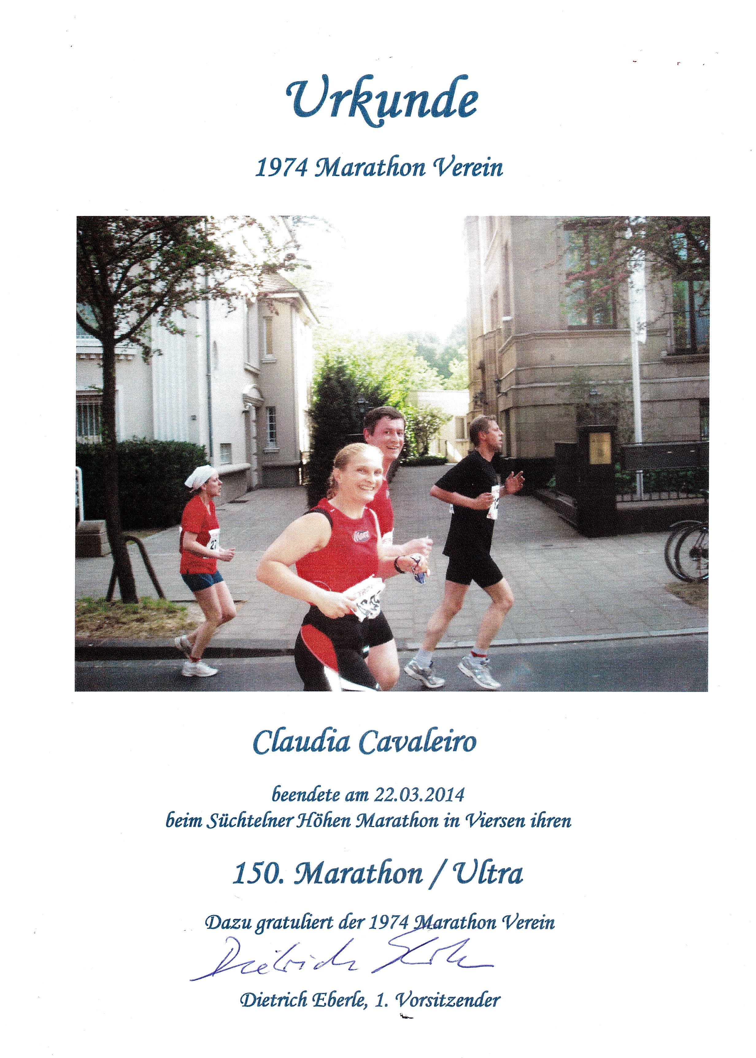 Claudia lief weiter regelmäßig Marathon, allerdings etwas langsamer und wie sie sagt: „So ein langsamer Marathon ist doch auch ganz nett!“ 2007 lernte sie Doris und Mario Sagasser kennen und setzte sich als Ziel, 100 Marathonläufe zu schaffen. Nach ihrem 100. Marathon in Duisburg 2011 stand einer Mitgliedschaft im 100 Marathon Club nichts mehr im Weg! 2013 bekam sie den Honorarprofessor verliehen. Peter Kellermann animierte sie, auch mal einen Marathon zur Feier ihrer Verleihung zu veranstalten. Das tat sie und am 22.03.2014 konnten wir den 10. Süchtelner Höhen Prof. Marathon als großes Jubiläum erleben! Der zweite Jubilar und damit der 3. Grund zum Feiern: